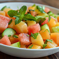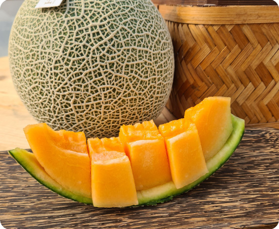 Japanese muskmelon is a premium fruit renowned for its exceptional sweetness and tender texture. Characterised by its smooth, netted skin and vibrant flesh, this melon is meticulously cultivated for optimal quality. In Japan, it symbolises care and appreciation, making it a luxurious gift. Its exquisite flavour and elegant presentation elevate any culinary experience.